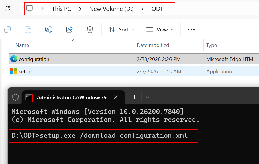 setup.exe /configure configuration.xml to download the LTSC package from the microsoft.